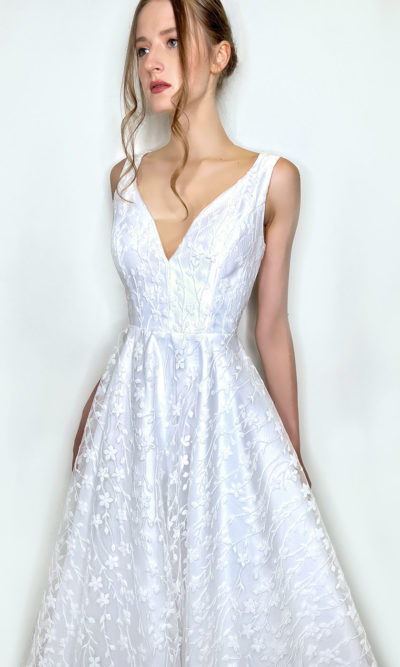 Notre boutique robe de mariée vous propose également des jolies robes de mariée en dentelle brodée.