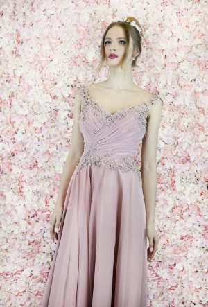 Robe de soirée chic rose pâle mousseline